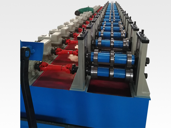 該設(shè)備由漲緊式開卷機—成型主機—校正機—液壓剪切機—孔定尺收料臺組成。可生產(chǎn)輕型、中型、重型倉儲貨架立柱和整體包合橫梁。該設(shè)備在開卷機和成型主機中間加入校平機—伺服送料機—沖床后即可先沖孔后成型。