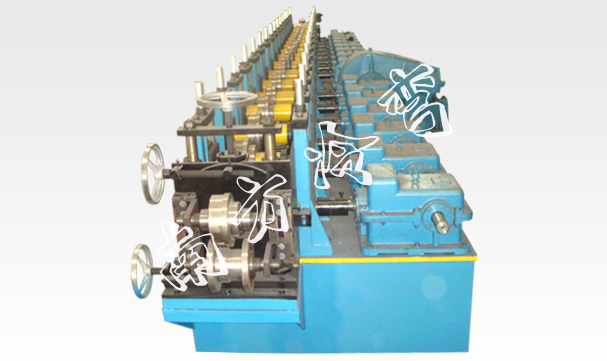 1、設備配置及用途: 該設備由雙頭漲緊式開卷機—成型主機—校正機—液壓剪切—成品收料臺組成,專用生產輕鋼龍骨 2、主要技術參數(shù): 軋制材料厚度:0.6—1mm 成型速度:3—20米/分 成型道次:8—16道 主機功率:3—11KW 傳動方式:齒輪箱傳動